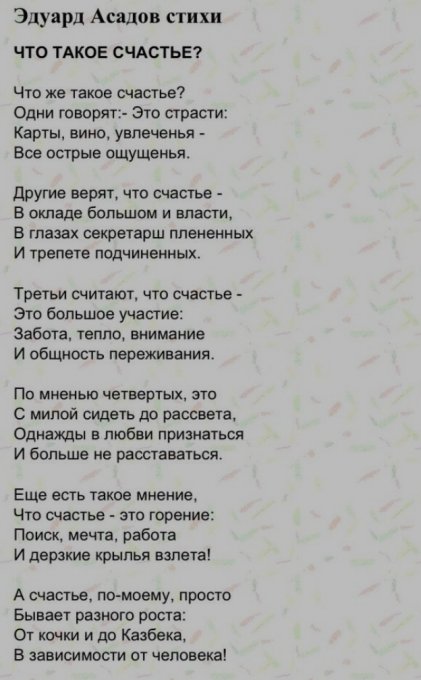 слову, не так тяжело достигается. Счастье может быть в мелочах,