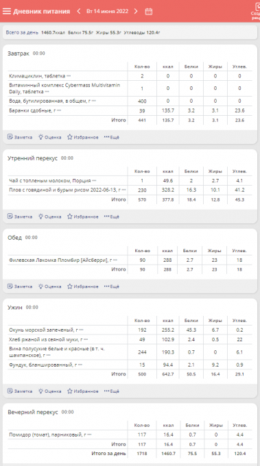 | Итого за день | 1594 | 1163 | 54 | 51 | 115 |