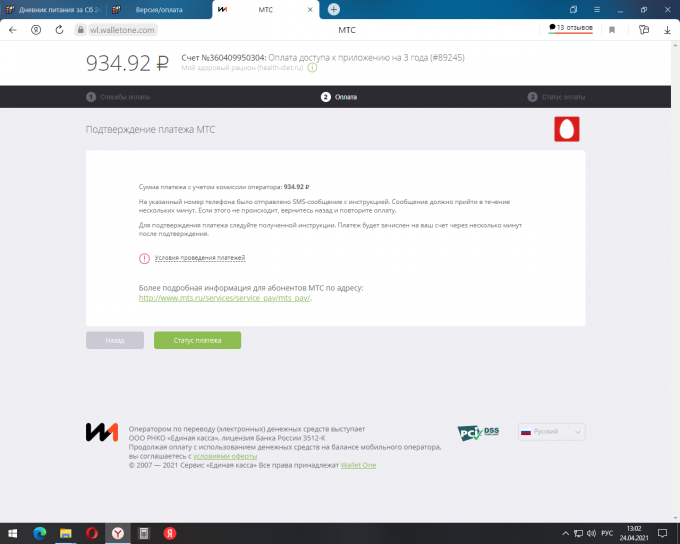комиссию сейчас и получилось в общем 932 рубля с копейками. Зато до
