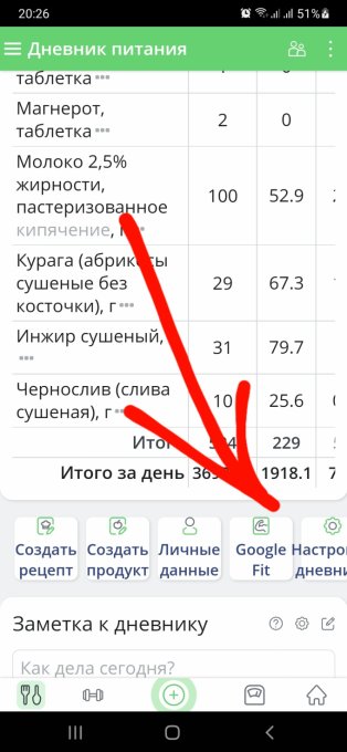 должна быть кнопка для загрузки из GoogleFit. И само приложение