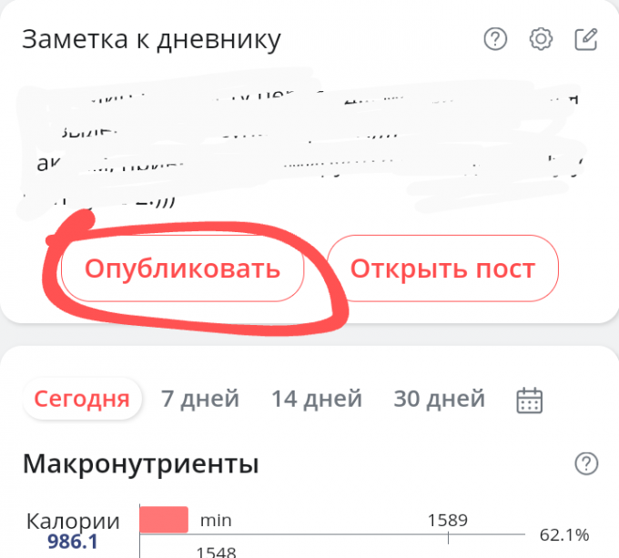 Оставьте заметку к дневнику как прошел ваш день, не менее 100