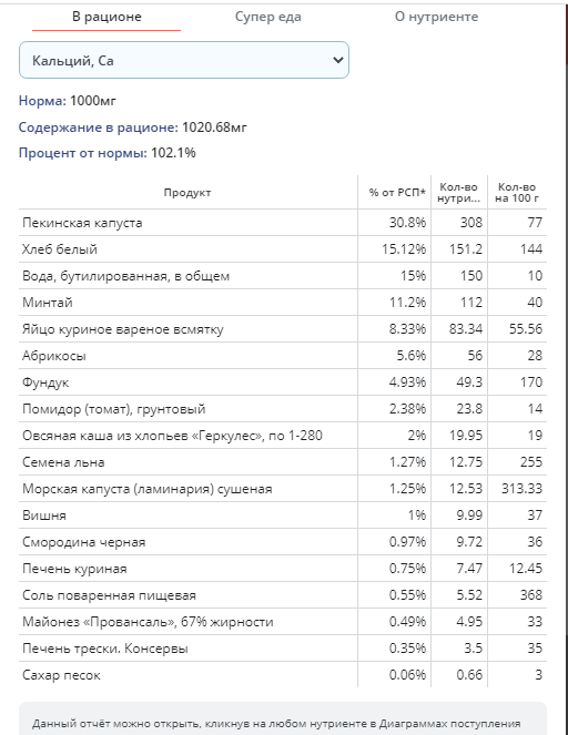 КАЛЬЦИЯ. Условную "норму" можно конечно набрать из разных