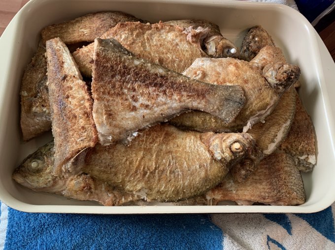 Чуть не испортила все дело вишня - после неё так разыгрался аппетит.. думала - не пригашу... но нет)) жареная рыба сделала своё дело