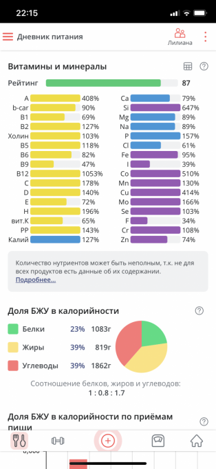На графике завтрак маленький, потому что часто завтракаю поздно (11-12 часа дня), и записываю его как обед.