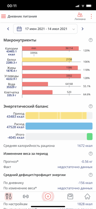 Чуть перебрала калорий от рекомендованной МЗР нормы.. но дефицит неплохой..