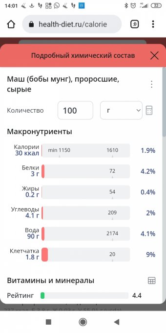 | Кол-во | Калории | Белки | Жиры | Углеводы | |