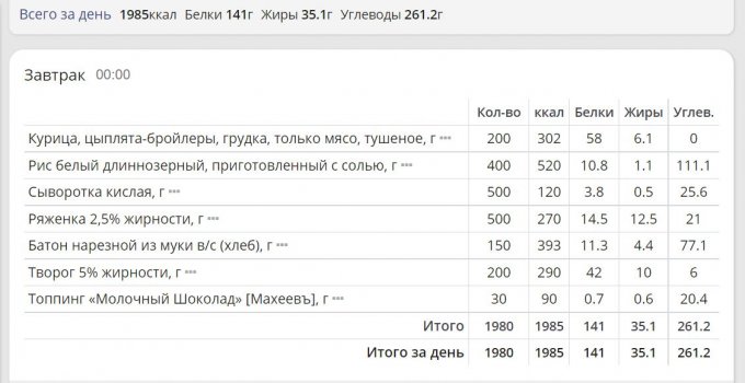 Ну и взвешиваю я готовые продукты что частично не правильно.