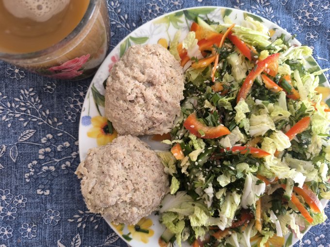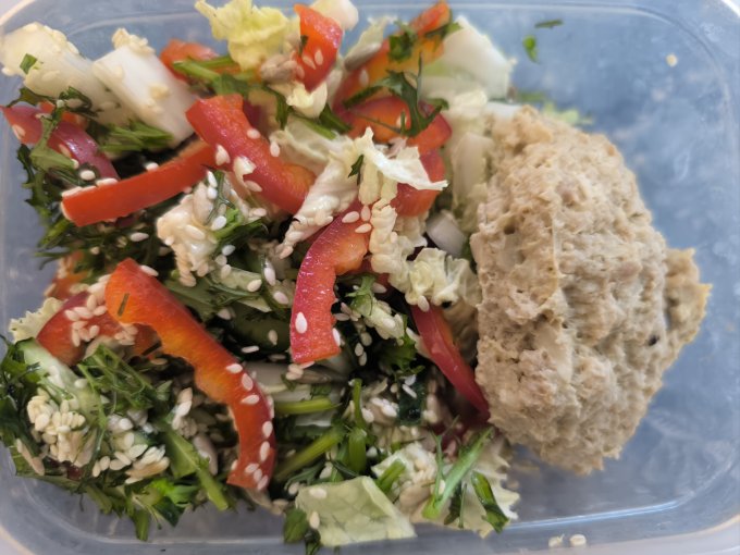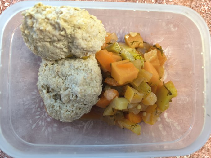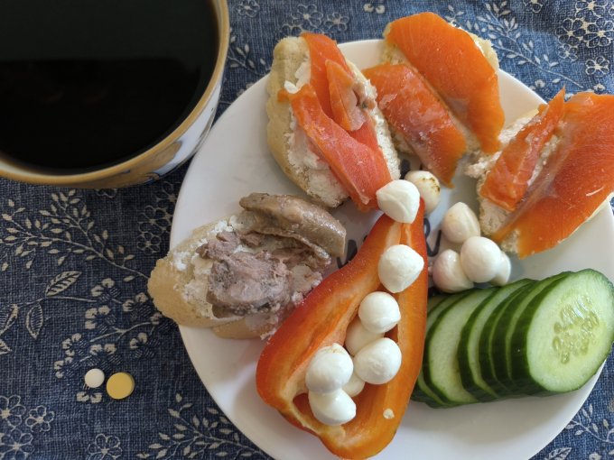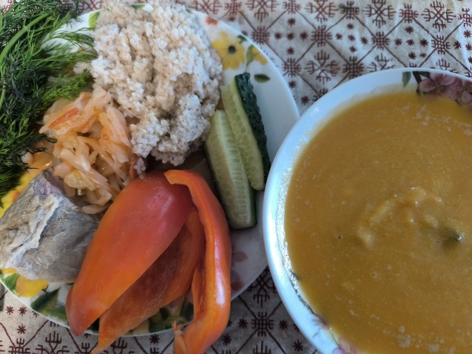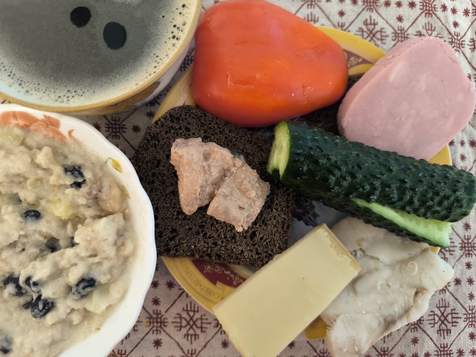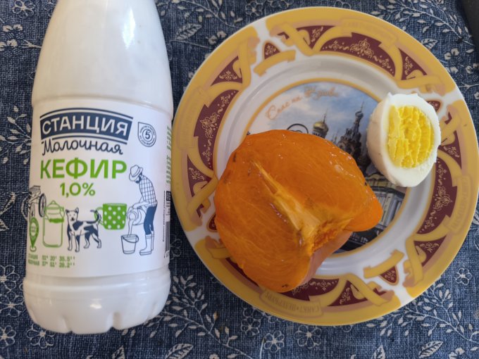 Но в обед не удержалась и съела маленький пирожок с мясом печеный из пекарни грамм 50 наверное, пол зефирки и одну конфету птичье молоко. Коллега принесла поминать свою свекровь.