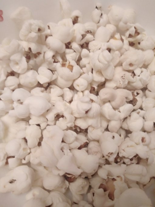 меня на перекус попкорн. Самодельный. Без масла и карамели, только
