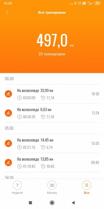 фитнес браслету. С конца апреля откатала больше 500 км. Не все