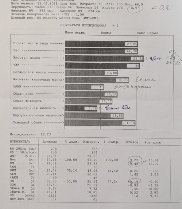 обмен чуть снизился, но находился на верхней границе нормы. Ничего
