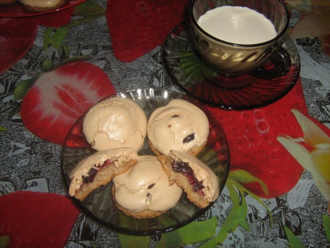Потом на них выложить свежие ягоды и "заполировать" крепким безе и