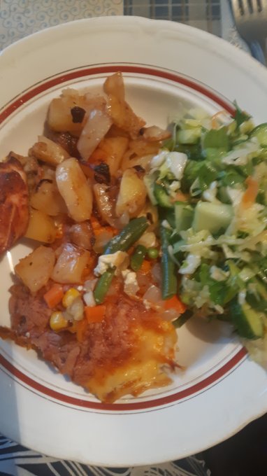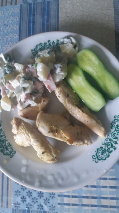 На ужин куча вкусного и полезного, разбавила все вредной жареной картошкой и газировкой и все равно не набрала нужных каллорий.
