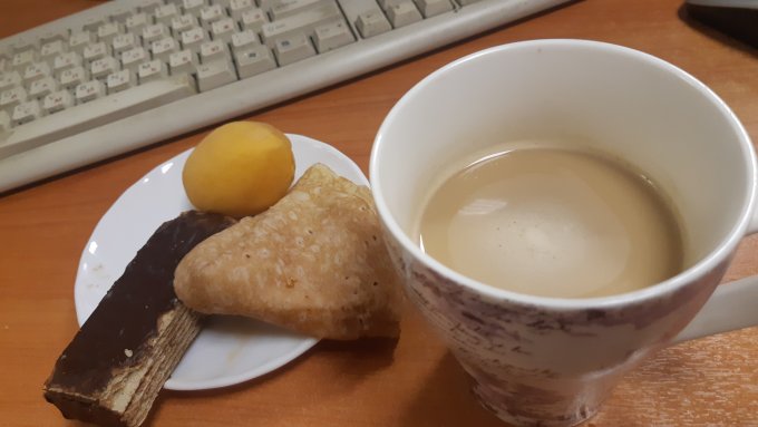 День был ужас, дршка шефа всю еду испортила. Я даже думала, что придется пить таблетку метформина на ночь. Так от сладкого было плохо. Я столько не ем уже. Вес вкусняшек приблизительный, т.к.делалось на заказ. Думаю завтрак был все 800 ккал, а не 600. Вообщем так даже есть не хочу, могла бы вместо такой еды съесть что-то путное, а не пустые калории. Вообщем очень расстроилась.