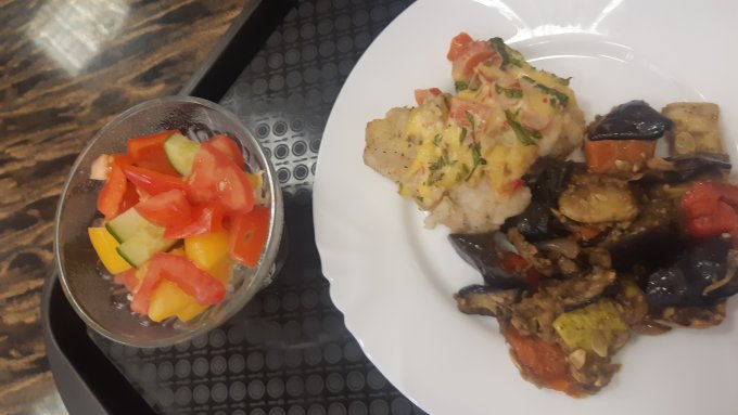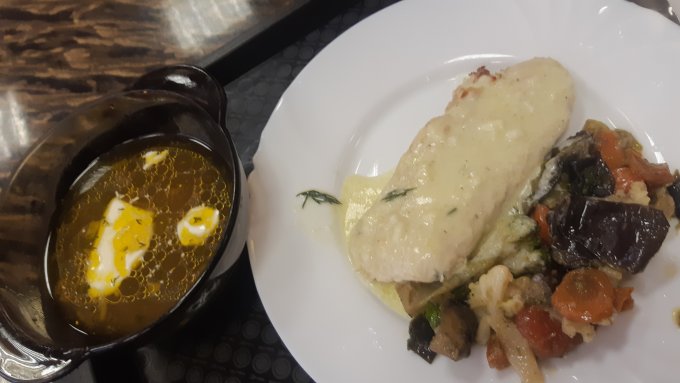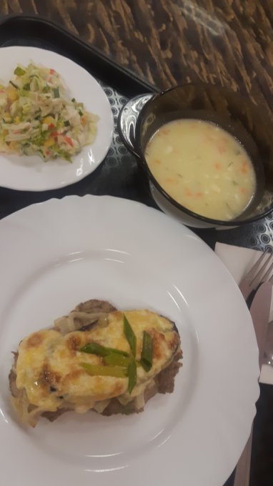 Обед, как всегда в кафешке. Вес приблизительный указала.