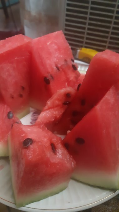Сегодня после работы поехала на дачу. У меня выходные. Мои как всегда набрали кучу вредного. Пришлось есть по немного всего. Только с арбузом перебор, но он был очень вкусный.