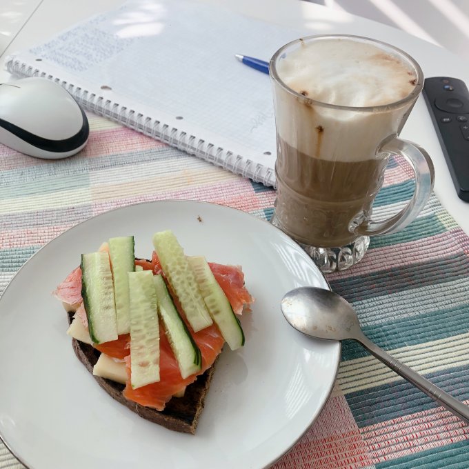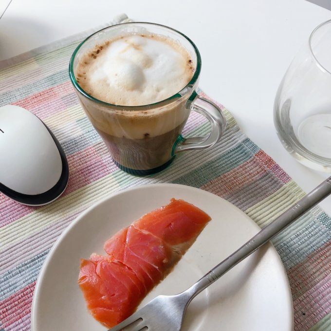 Перекус кофе и солёная рыба. И две ложки сахара… дочь попросила сварить ей кофе впервые. Я сварила не крепкий (у нас Nespresso, есть варианты разной интенсивности), добавила просто молоко (вспененное она не пьёт даже в молочных коктейлях) и отдала. Попросила попробовать без сахара, чтобы понять вкус самого кофе.. она глотнула, переплевалась и добовила две ложки сахара 🤣🤣🤣, но всё равно переплевалась и пить не стала. Вылить у меня рука не поднялась, допила, прокомментировав ей, что это 32кк, на которые я могла бы съесть 150гр арбуза а не две ненужные ложки сахара 😄