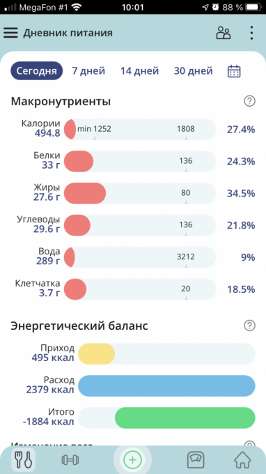 Кроме тренинга, решила поменять соотношение БЖУ в рационе. И, видимо, подсократить фрукты и промышленные сладости, естественно.