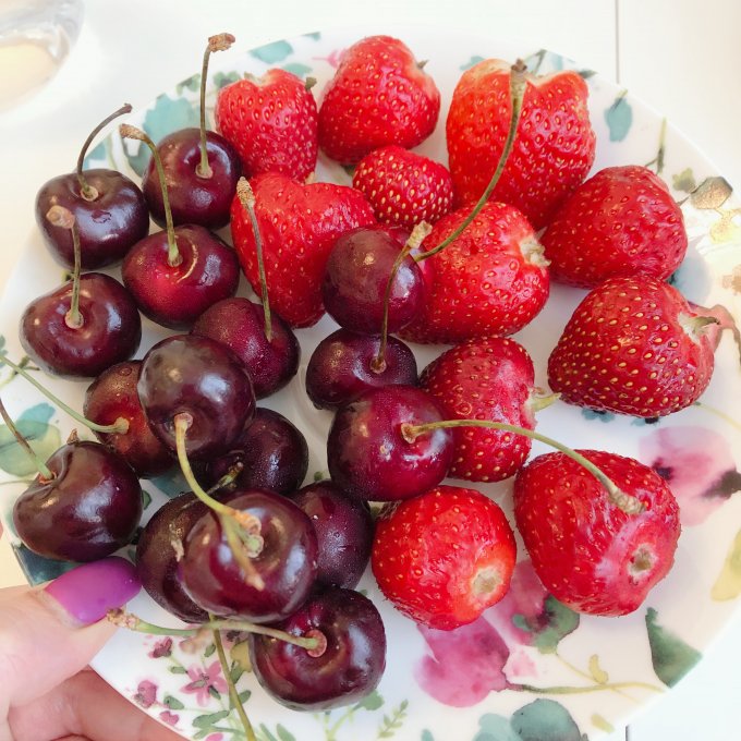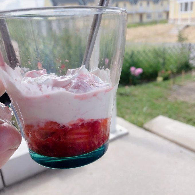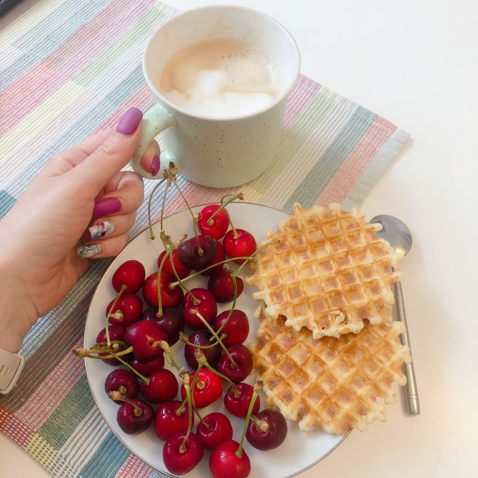 Перекус в 22:45 - как мне это нравится! Я достаточно много белков, ржиров и калорий не доела днём - не успела, не хотела, была занята на работе, так что, могу себе позволить🍓🍒 🫖