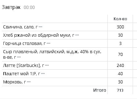 | Кол-во | Калории | Белки | Жиры | Углеводы | |