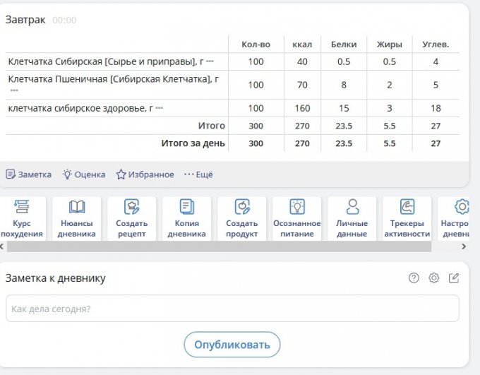 Ввожу клетчатку в дневник питания. В основной базе она не