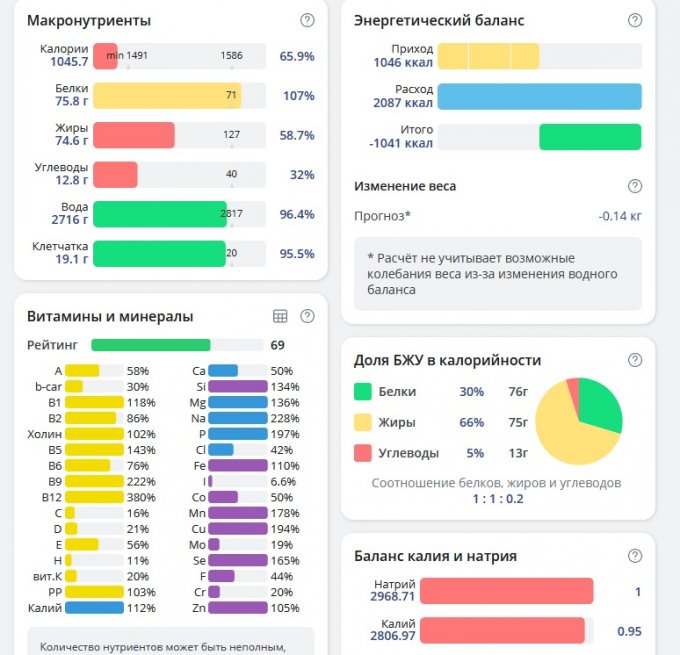 Углеводы я не добирала, стралась чтобы они были половину рекомендованного.