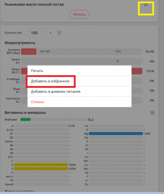 | Рыжиковое масло полный состав |