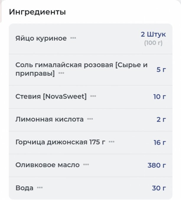| Кол-во | Калории | Белки | Жиры | Углеводы | |