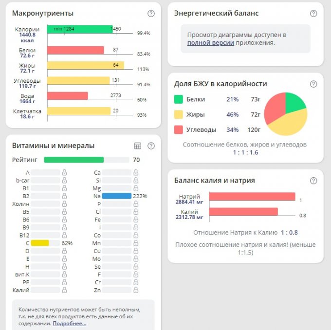 | Итого за день | 1982 | 1440 | 72 | 72 | 119 |
