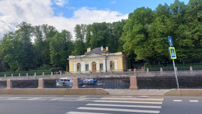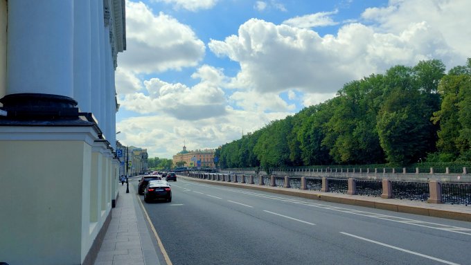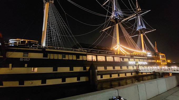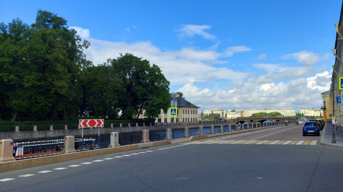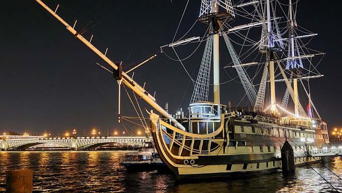 По дороге, фото которой выше, мы сразу же попадаем к фрегату Благодать у Троицкого моста. Знаковое место во многих планах.