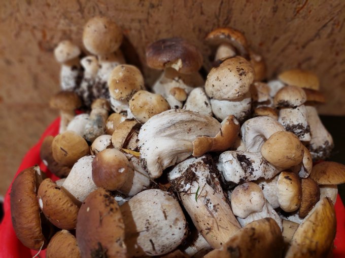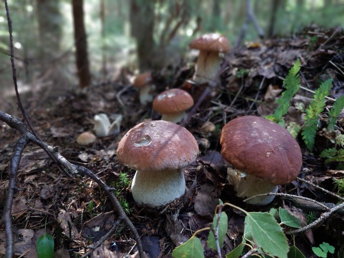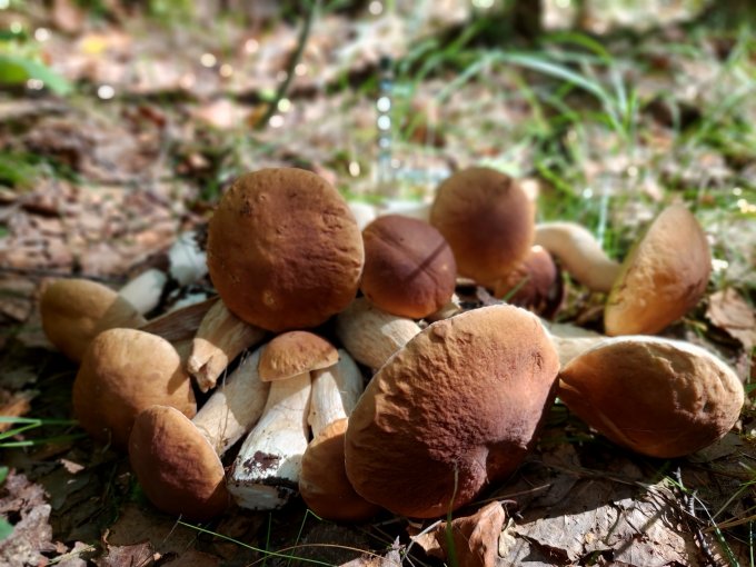 На второй фотке, где грибы лежат кучкой на траве, - это десяток