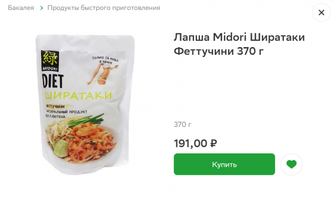 можно купить Мидори Ширатаки (лапша) из коржаковой муки.