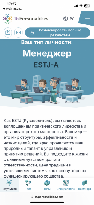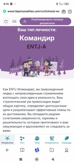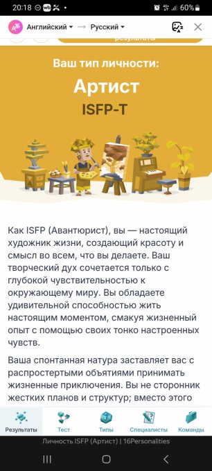 Я этот тест много раз проходила, и результат всегда одинаковый, что мен несколько изумляет.