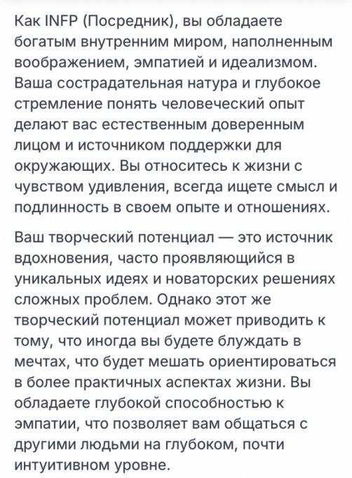 Меня лет до 23-24 "соционика" записывала в INFP. Сейчас INTJ