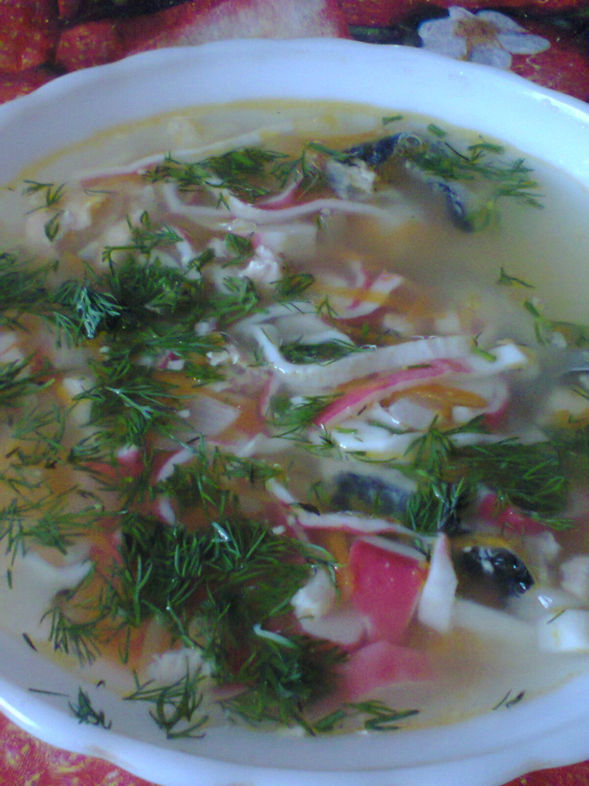 готов.Зелень добавляем в тарелку по вкусу.Получается рыбный супчик
