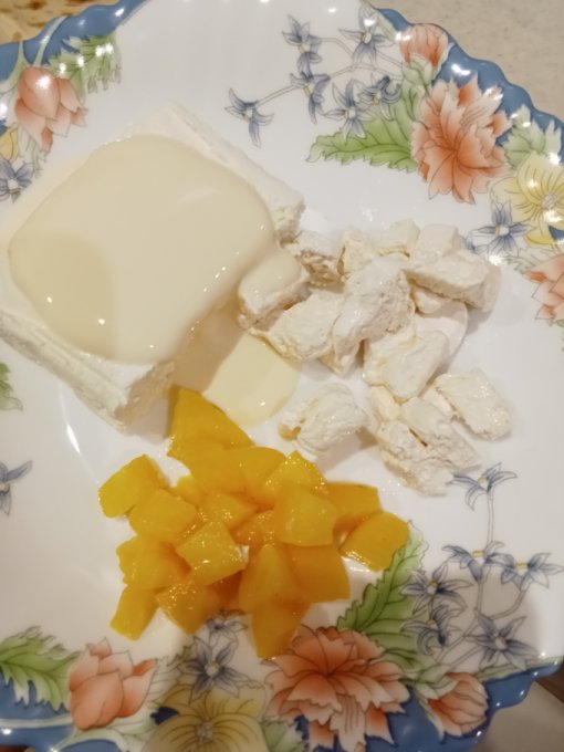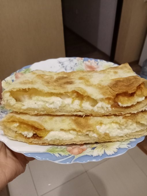 Сделала конвертик из лаваша с начинкой: творог, консервированный персик и зефир, обалденный десерт получился))