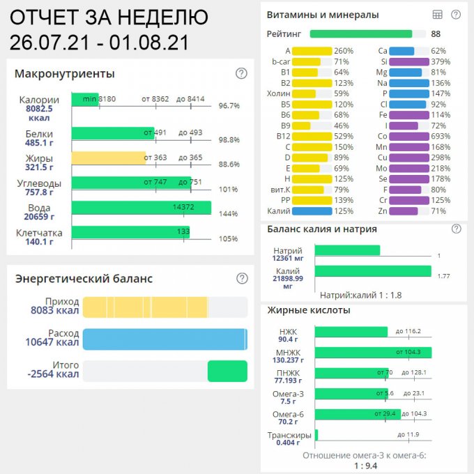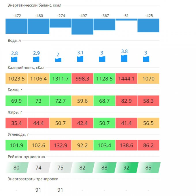 | Итого за день | 3205 | 1070 | 58 | 56 | 86 |
