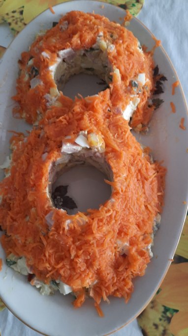 С 8 марта девочки !Первый раз делала торт Красный бархат,слизила с ютуба,понравился всем ,,салат 8 ,пришёл зятек ели пили,ничего не писала
