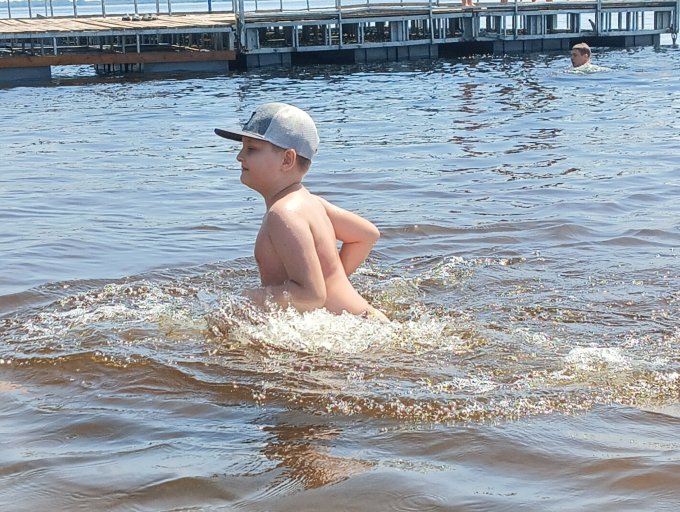 С утра привезли внука и я ему обещала, что пойдём на пляж,9.30 мы туда приехали, народу было много, где то в 12 мы уже накупались, загорели устали, ушли, вода тёплая, чистая, прелесть. Как приятно наблюдать за малышами на пляже