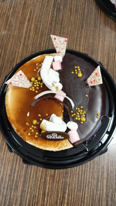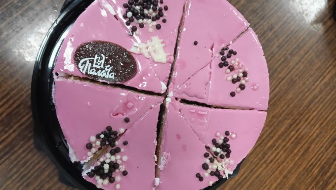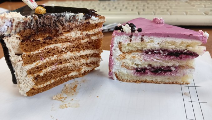 Сегодня также -20 и ветер сильный. На работе у сотруднице был Д Р, было 2 тортика У Палыча. Один йогуртовый черничный и другой Карамельная девочка, мне он лучше понравился и в разрезе хорош
