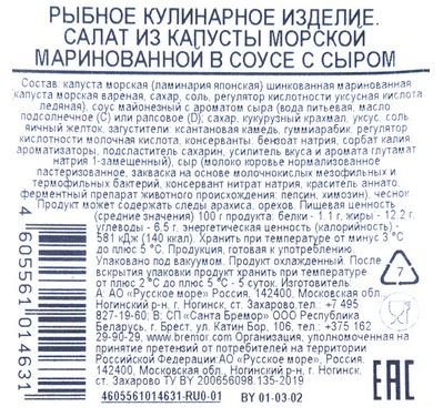 | Морская Капуста "Салат в Майонезом Соусе с Сыром" [Балтийский берег] |