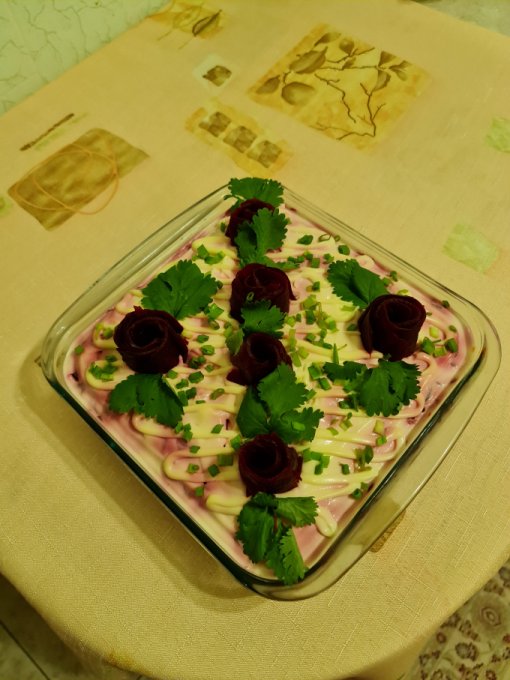 После работы уехали под дождем ( новогодним ))) к родным встречать праздник, успела приготовить сельдь под шубой и заправить противень мяса по французски ( запекли на месте, было очень вкусно))). Писать нет смысла..