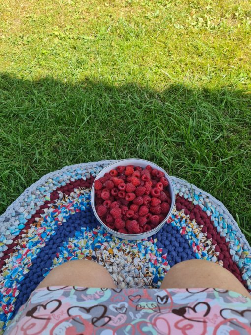 Съездила на дачу на пару часов, привезла последних огурцов, помидоров, картошки. Соседская внучка, моя поклонница Стеша, быстренько собрала и принесла мне угощение, мисочку поздней малины...Стеша грустит, скоро в школу... третий класс...