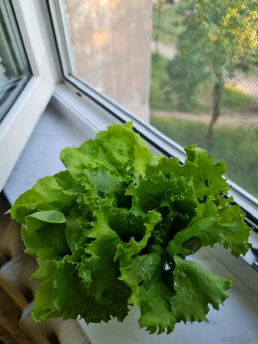 Калорийность сегодня хорошая, в норму уложилась, на даче были вкусные вещи, я не ела ничего лишнего, Салат подрос ( сеяла два сорта - Айсберг и Берлинский желтый), собрала хороший пучок. На меня положила глаз уличная кошка, стережет меня у подъезда, мяуканьем приветствует издалека... ничего не поделаешь, ношу с собой пакетик корма... мы в ответе...и т.д.