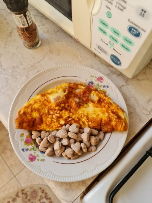 Халва меня погубила,,, Давно мечтала, купила, и съела целую упаковку... Омлет был вкусный...