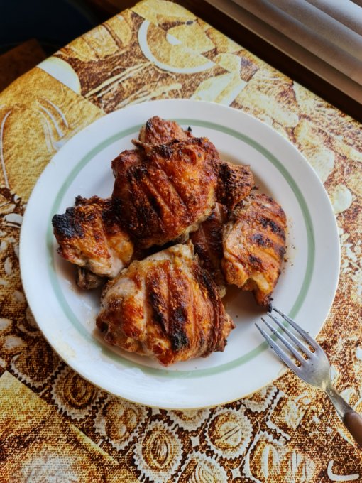 Курица, цыплята-бройлеры, бедро, только мясо, приготовленное на гриле