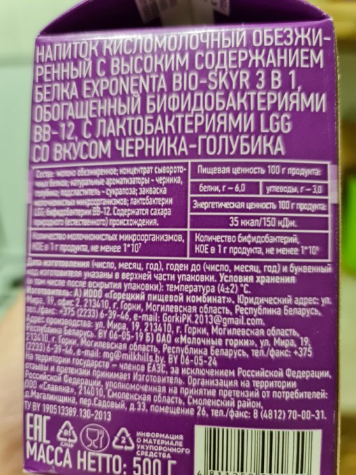 | Напиток Кисломолочный Обезжиренный с Высоким Содержанием Белка [Exponenta] |