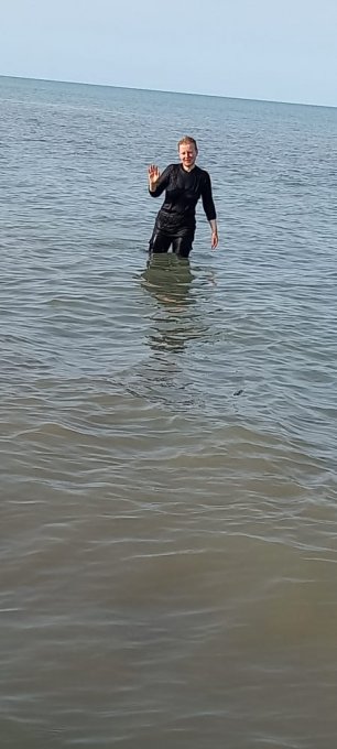 Второй день купаемся в море. Кайф. Я впервые без шапки для купания. Племянница мужа сфоткала меня через фильтр, который из "второй свежести" делает красавицу. Заметила, все кто делают пластику и ботокс становятся похожими на Майкла Джексона.)