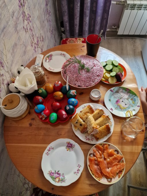 Праздник праздник! Всех со Светлой Пасхой! Вчера даже не записывала ничего, праздничный стол был на завтрак из селедки под шубой , яиц, рыбки слабосоленой (своего посола) и кулича. На обед тоже селёдка, но с курицей в духовке и огурец 🥒 . Был ещё йогурт на перекус, немного креветок🦐 и кофе☕ . Сегодня даже отвес на удивление. Неделю снова пытаюсь начать с заполнения дневника.