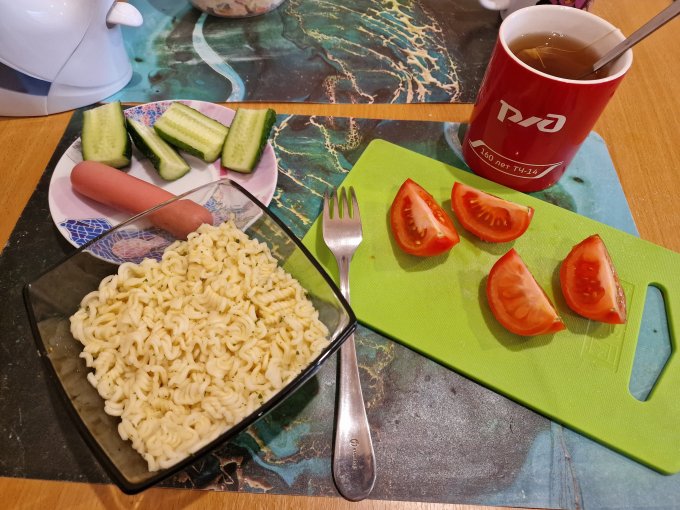 Сегодня можно сказать разгрузочный день, встала к обеду, есть не хотелось, но решила поесть, чтоб к вечеру не наступил зажор. Прекрасно пообедал а (пришлось доесть остатки риса,а это немного больше, чем планировала, поэтому перебрала по углеводам, чуть) и поужинала ( около 18), потом только попила матчу. В целом я довольна. Думала, если что съесть банан на перекус, но зверского аппетита не было, поэтому обошлось.